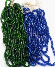 Vintage Antique Czech Glass Seed Beads Partial Mini Hanks Cut Blue Green WB1-66