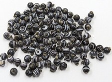 Lot Round 6mm Black & White Striped Glass Beads Loose Antique Vintage BB90-206