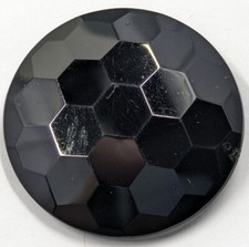 Vintage Antique 1800s Black Glass Mourning Round Faceted Single C29-22
