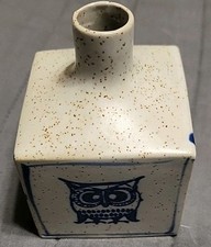 OMC Japan Otagiri Ceramic Bud Vase MCM Blue And White Owl Square Art Pottery