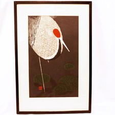 Mid Century Japanese Print of Emperor Crane Sacred Lake KAWANO KAORU c.1950