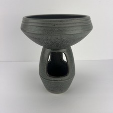 Mid Century Ikebana Vase Pottery Footed Gray Japan Modernist Vtg