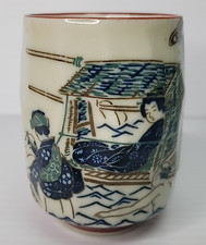 Japanese Mid Century Stoneware Yunomi Sushi Tea Cup 3 3/4" Rowing Emperor RARE