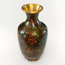 Vintage Chinese Mid Century Cloisonne Brass Enamel Bud Vase Floral Multicolor 8”