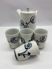Set of 4 1960's Japanese Mid Century Modern Confetti Glazed Teapot & Tea Cups