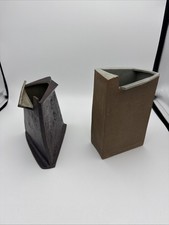Rare 2 Vtg MCM Japan Ceramic Vase Angular Mid Century Modern Geometric Ikebana