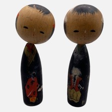 Japanese Kokeshi Wooden Doll Set 2 Hand Crafted Bobble Toy 4.5” Japan Vtg 1940s