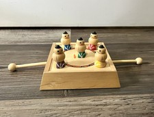 Vntg Japanese Wooden Sumo Wrestling Game Sumo Toy Small Tabletop Japan Classic