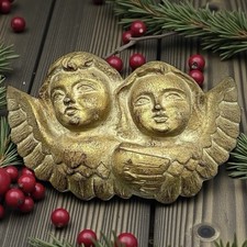 Vintage Folk Art Hand Carved Wood Pair Angels Wings Antique Gold Gilt Mexico EUC