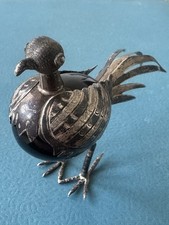 Antique RARE Mexican Art .925 Sterling Silver & Black Onyx Bird Figure