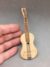 Vintage Folk Art Mexico Miniature Wood Guitar Handmade 4.75" Doll Dollhouse Toy
