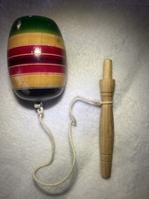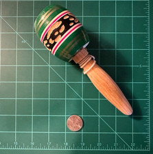 Handmade Wooden Trompo Top — Mexico Folk Toy — Burned Floral Design — Vintage