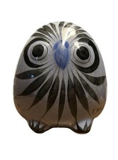 Vintage Mexico Tonala Pottery Owl Hand Painted 5” Gray Black Collectible Statue