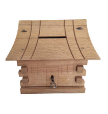 Vintage Hand Made Folk Art Rustic Log Cabin Bank / Trinket Box w/ Lock & Key Toy