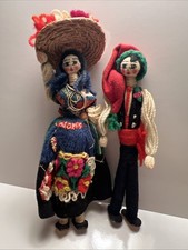 2 Vintage Mexican Souvenir Doll Figure with Sombrero Mexico Toy 1950's-1960's