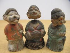 3pc Vintage Antique Hindu Asian pottery Nodder bobble head figures 4.5"