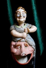 Antique Bisque Nodding Head Maw Riding a Pig - Germany, Japan