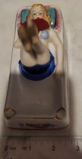 ANTIQUE RISQUE BLONDE LADY BATHING PORCELAIN NODDER ASHTRAY, T.T, Estate Item