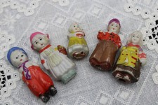 5 Antique Bisque Penny Miniature Dolls Figurines 1 5/8"- 2 1/2" T, Japan