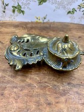 antique brass inkwell ornate Belgium desk accessory (missing insert)