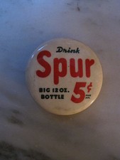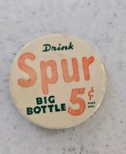 Vintage Drink SPUR Big 12 OZ Bottle 5 Cents Plus Deposit Advertising Pin Pinback