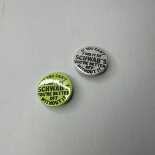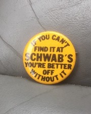 Vintage If You Can't Find It At Schwab's Store Advertising Pinback 2 White Green