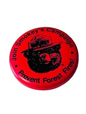 Smokey Bear Forest Fire Pink Advertising Sign Ad Antique Button Pin Vtg Pinback