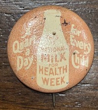 VINTAGE DAIRY MILK BOTTLE "A QUART A DAY FOR EVERY CHILD" ADVERTISING PIN 1 1/8"
