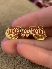 Vintage Toys For Tots Gold Tone Enamel Lapel Pin (GW16)