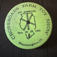 VTG 1992 Crossroads Farm Toy Show Bloomington, IL Promo Ad Pinback Button Pin