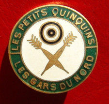 ANTIQUE FRANCE LES PETITS QUINQUINS LES GARS DU NORD DARTS BRONZE ENAMEL BADGE