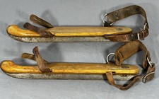 Antique Wooden Victorian ice skates with leather straps