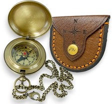 Antique Brass Pocket Compass with Leather Case Gifts | Engraved antique