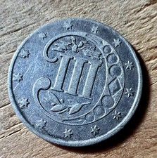 1867 Three 3 Cent Nickel Piece 3C US Antique Type Coin