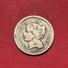 Collectible Antique US Three Cent Piece C/N - 1866 - Good - $8 s/h
