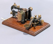 Antique Morse Telegraph Key & Sounder on Wood Base c1900 – Original Wiring