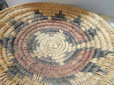 GENUINE NATIVE AMERICAN ANTIQUE BASKET FLAT OVAL TRAY CORN PATTERN 12.75" WIDE