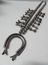 ANTIQUE PAWN NATIVE AMERICAN STERLING SILVER SQUASH BLOSSOM NECKLACE 187g!