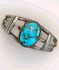 Antique Navajo Sterling Silver and Turquoise Bracelet Size 5.5 + 1.25 Gap