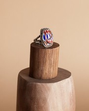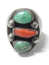 ANTIQUE Size 11 NAVAJO INDIAN STERLING SILVER 14k, TURQUOISE, CORAL, MOP RING