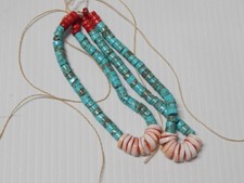 2 VINTAGE / ANTIQUE SANTO DOMINGO INDIAN CORAL / TURQUOISE / SHELL JACLA