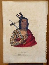 NATIVE AMERICAN SHAWNEE CHIEF KISH-KALLO-WA (1785-1859), RARE ANTIQUE LITHOGRAPH