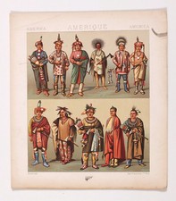 1888 America Indians Historic Costumes Art Lithography Antique Print #2