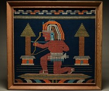 Antique Original Vintage Native American Aztec Arrow Hunter Needlepoint Tapestry