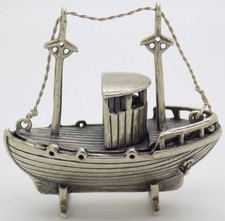 Vintage Italian Handmade Genuine Silver Fisherman Boat Large Figurine Miniature
