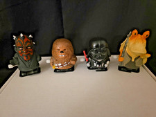 4 RARE, NEW VINTAGE JAPANESE 2.5 IN WIND-UP TOYS-MAUL,JARJAR,VADER,CHEWBACCA