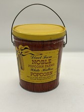 1950's Noble Popcorn Farms Advertising Tin Can Container. Sac City, Iowa. Corn.