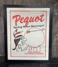 Vtg Framed Pequot Spring Water Beverages Advertising Poster Sign Chief Graphic