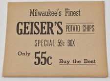Vintage Milwaukee WI Finest Geisers Potato Chips Paper Store Advertising Sign