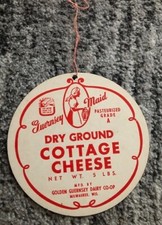 Cottage Cheese Fan Hangar Advertising Promo Sign Vintage Golden Guernsey Maid
